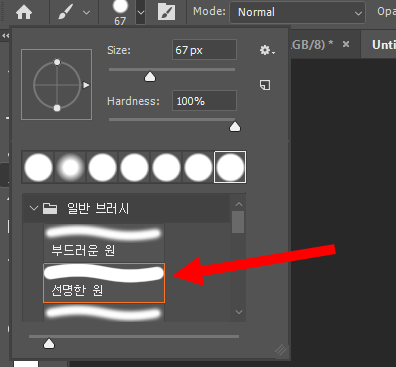 10)브러시 프리셋에서 선명한 브러시를 선택한다.