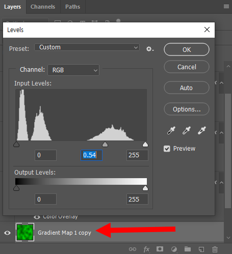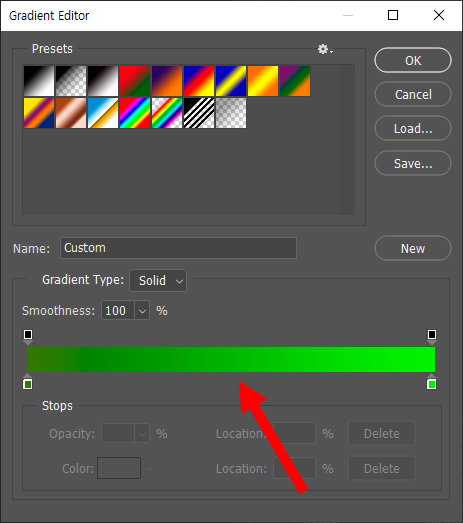 7)gradient map의 색상을 설정한다.
