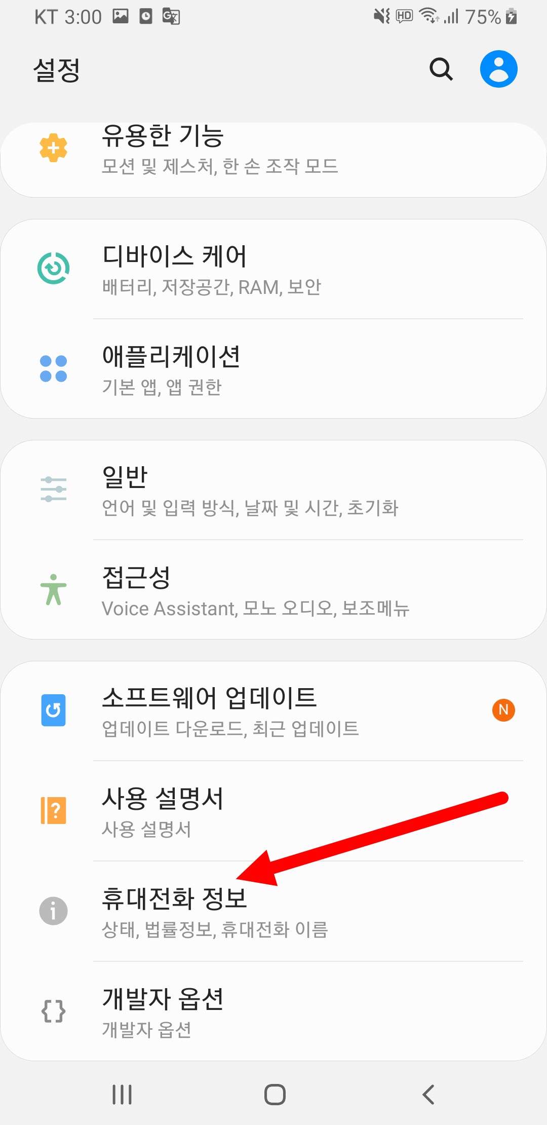 2)설정에서 휴대전화 정보로 이동한다.
