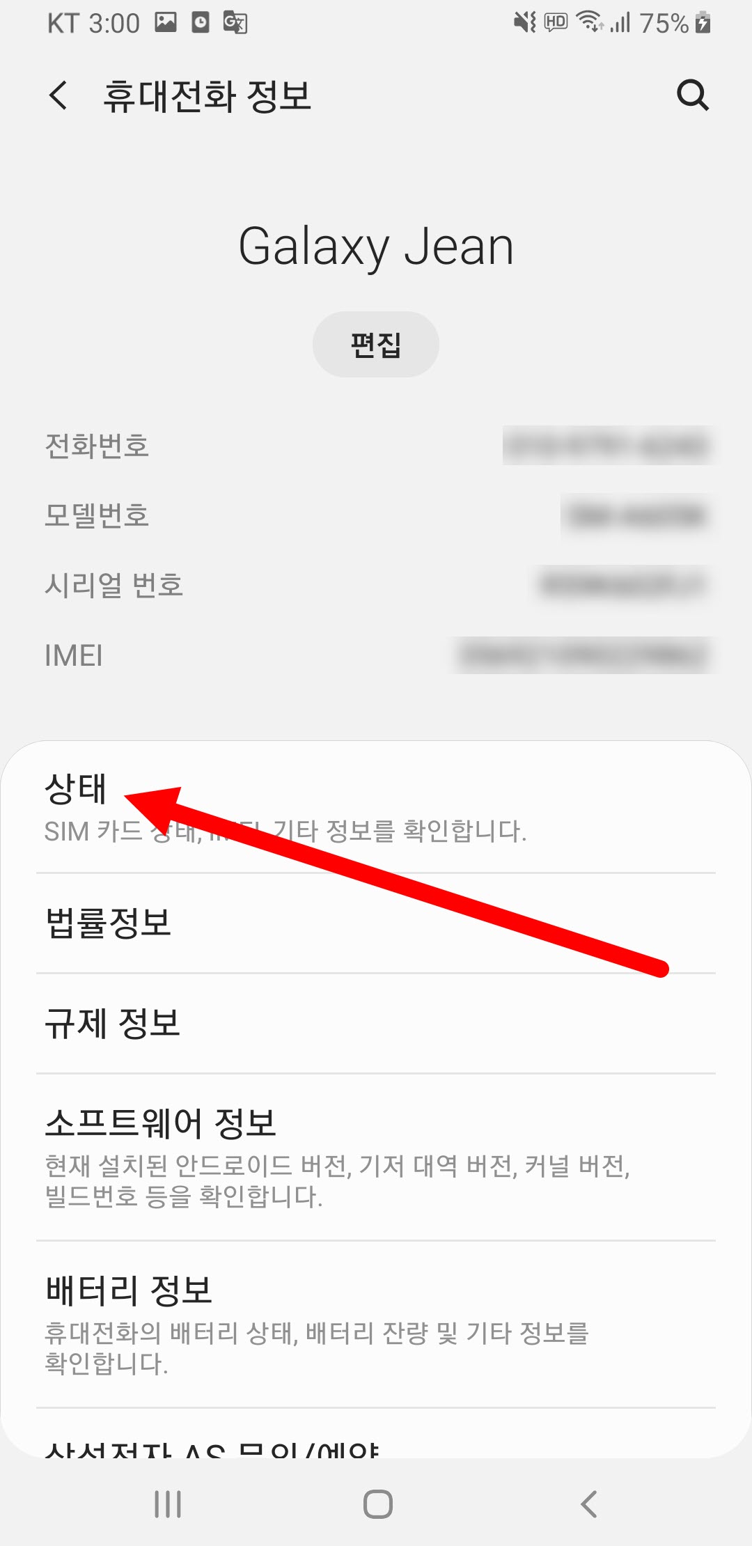 3)휴대전화 정보에서 상태로 이동한다.