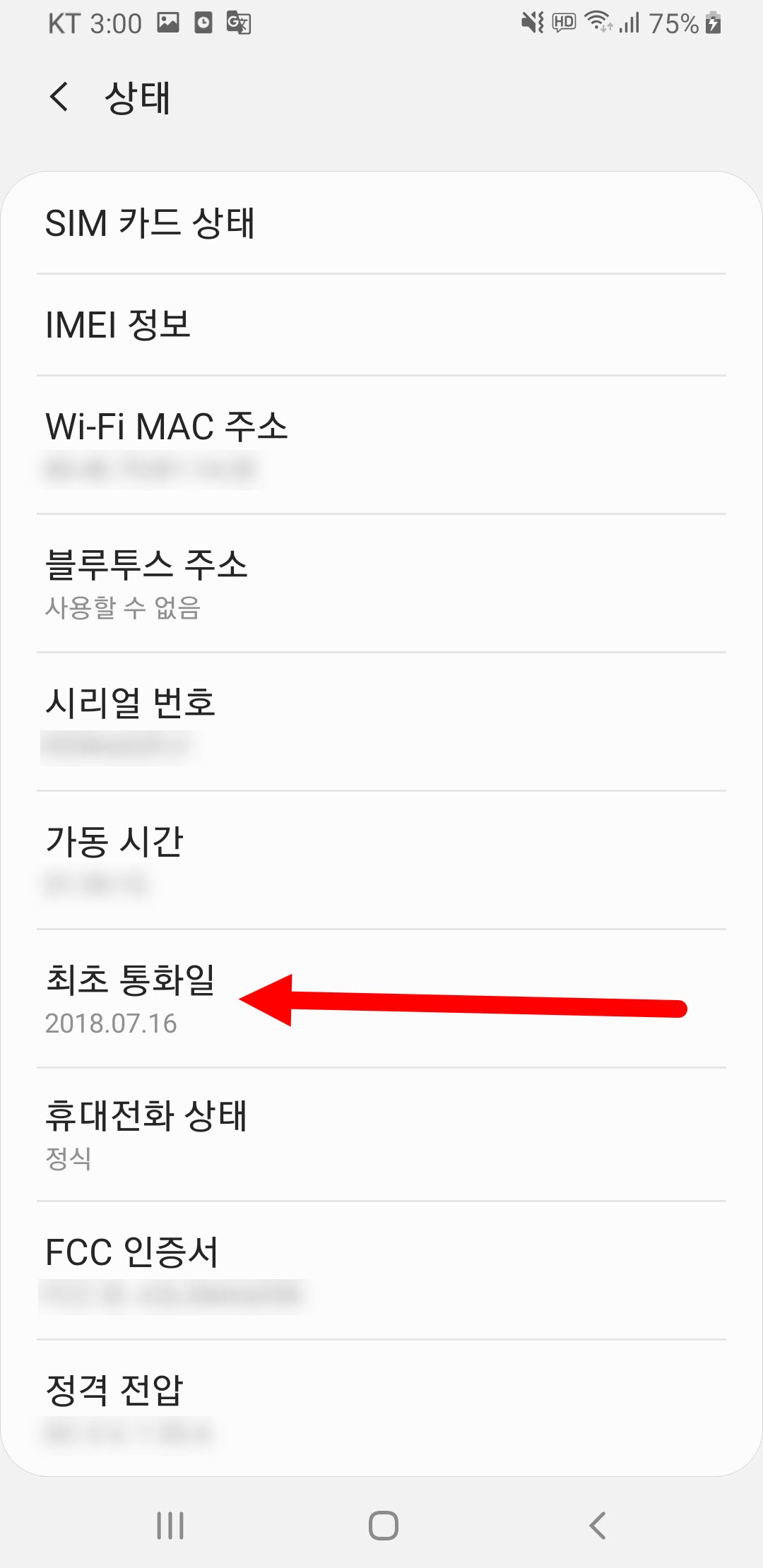 삼성 갤럭시에서 휴대폰 개통일(최초 통화일) 확인하기