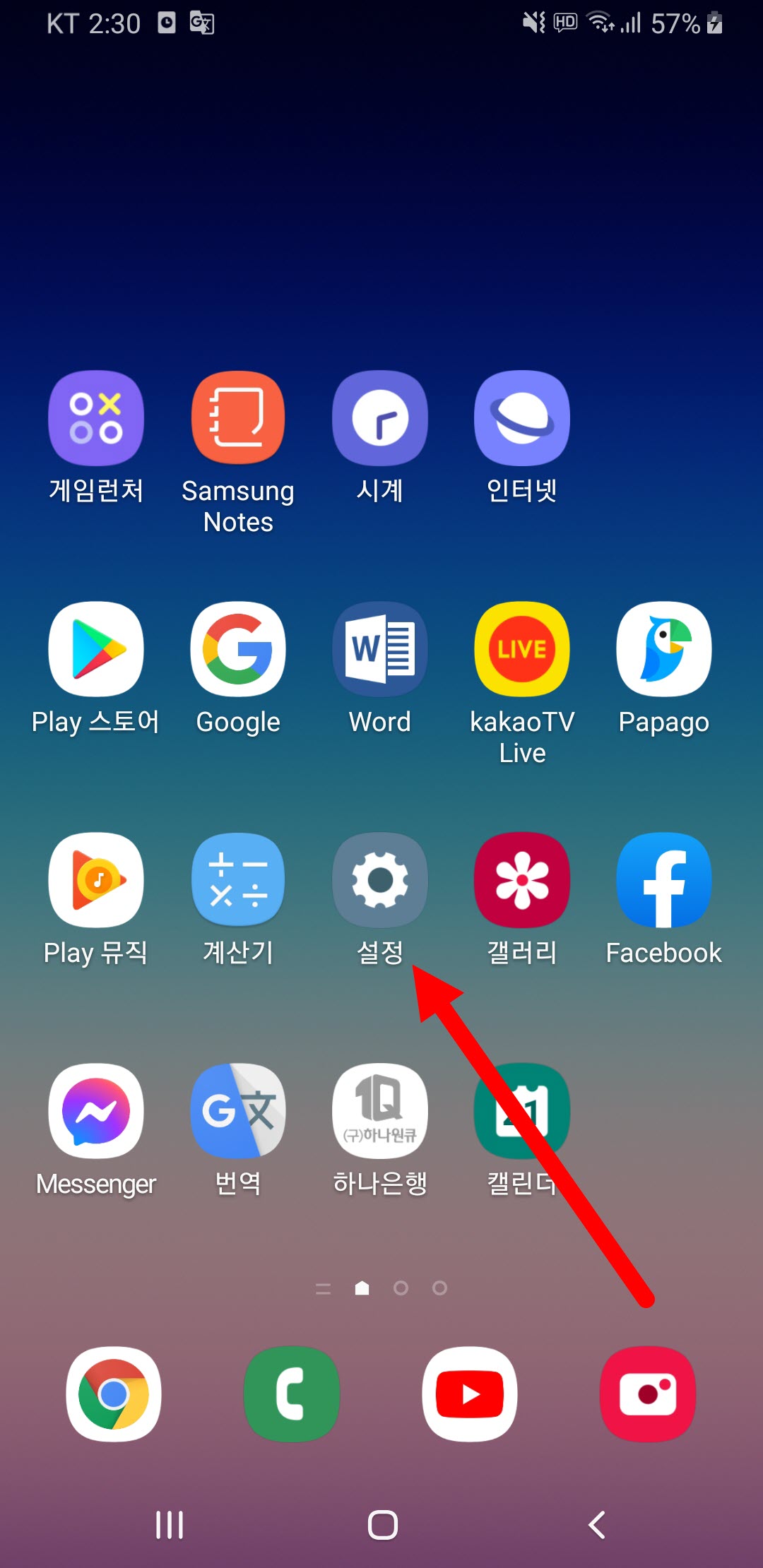 1)갤럭시 초기화면에서 설정으로 이동한다.