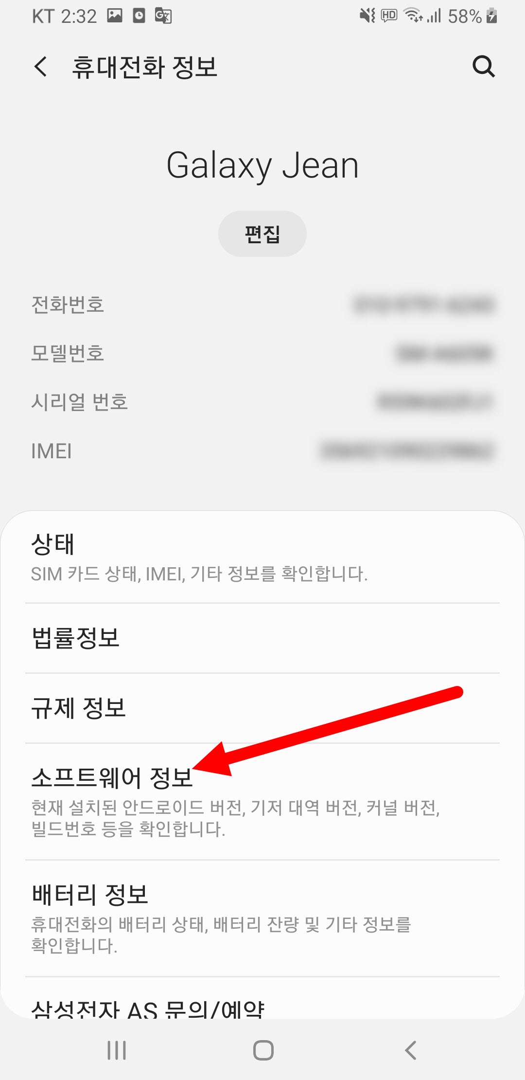 2)설정에서 휴대전화 정보로 이동합니다.