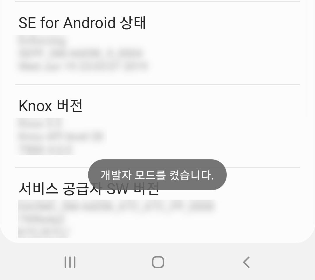 6)개발자 모드를 켰습니다. 문구가 표시되면 개발자 옵션이 활성화된것입니다.