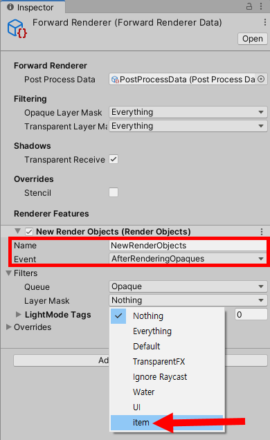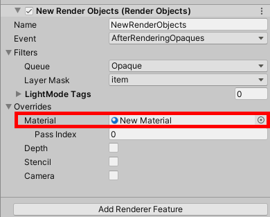 9)렌더러에 새로운 renderer feature를 추가한다. add renderer feature를 클릭하고 render objects를 선택한다.