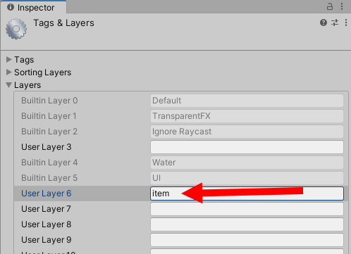 3)게임 오브젝트의 레이어를 설정한다. 새로운 레이어를 추가하려면 인스펙터에서 layer의 add layer로 이동한다.