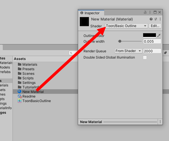 5)ToonBasicOutline 쉐이더를 프로젝트에 임포트한다.