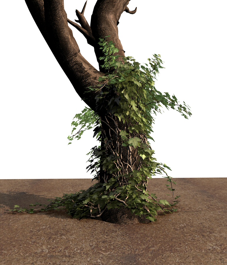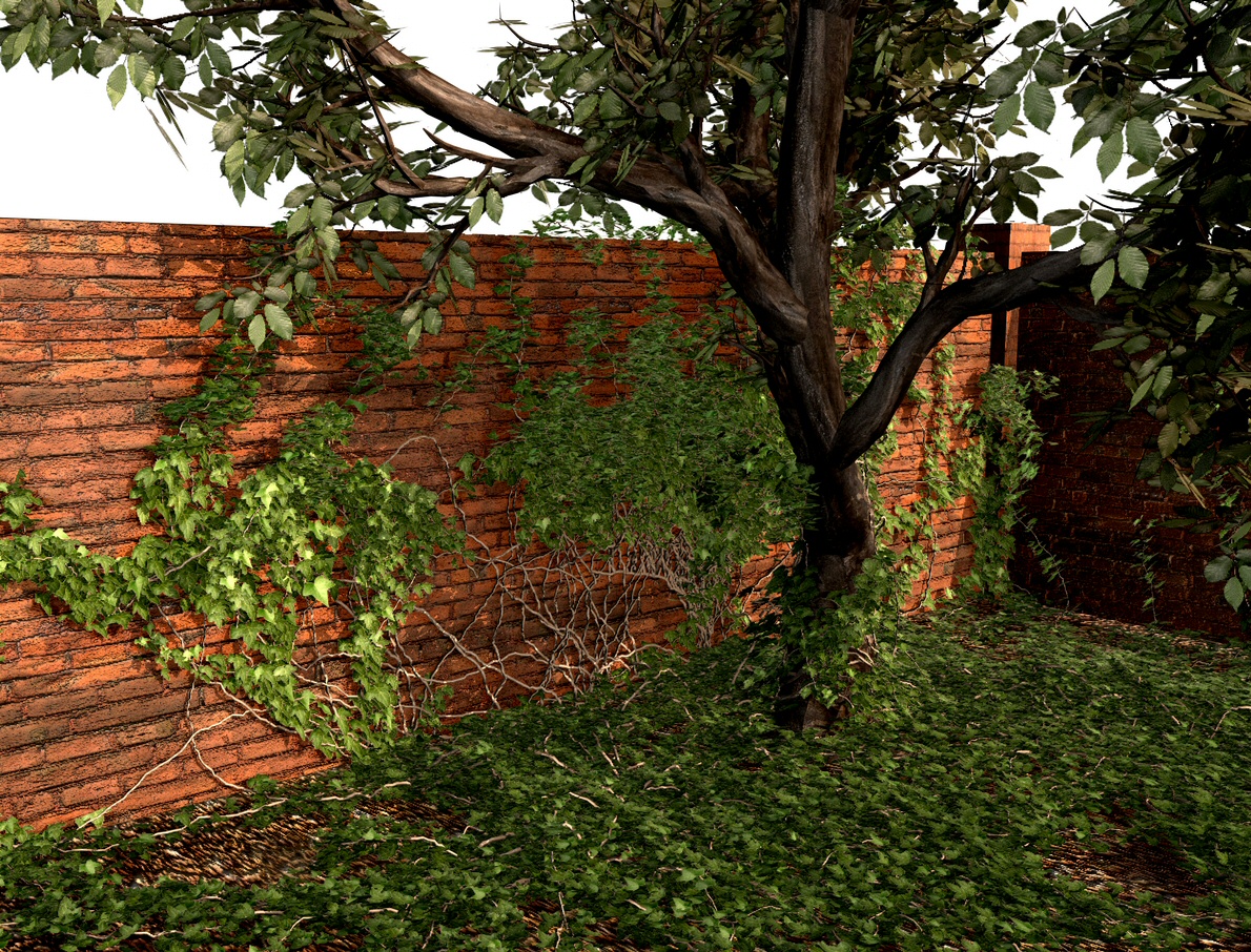 A few months ago I was looking for a new sample scene to test watercolor renderings. I was thinking of something complex, filled with vegetation - like trees overgrown with ivy. Fortunately I was able to implement a procedural system so that the ivy would