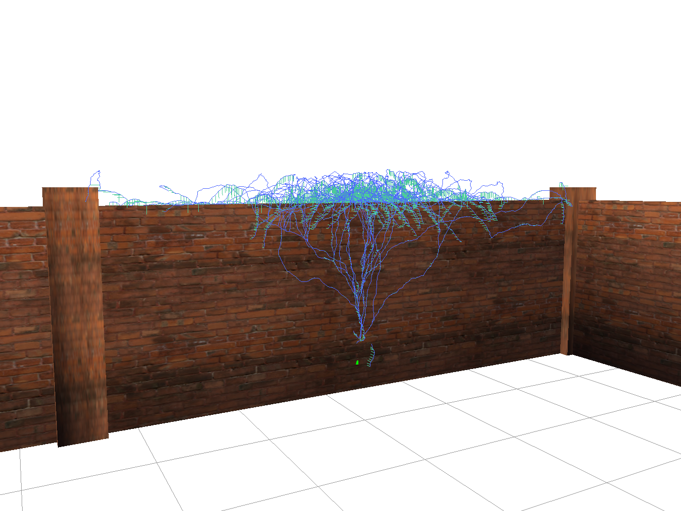 2)오브젝트를 불러오기하고(import) 마우스 두번클릭으로 ivy root를 설정한후 grow를 클릭하면 시뮬레이션을 진행한다(obj파일의 지오메트리는 삼각메시로 이루어져있어야한다)