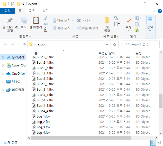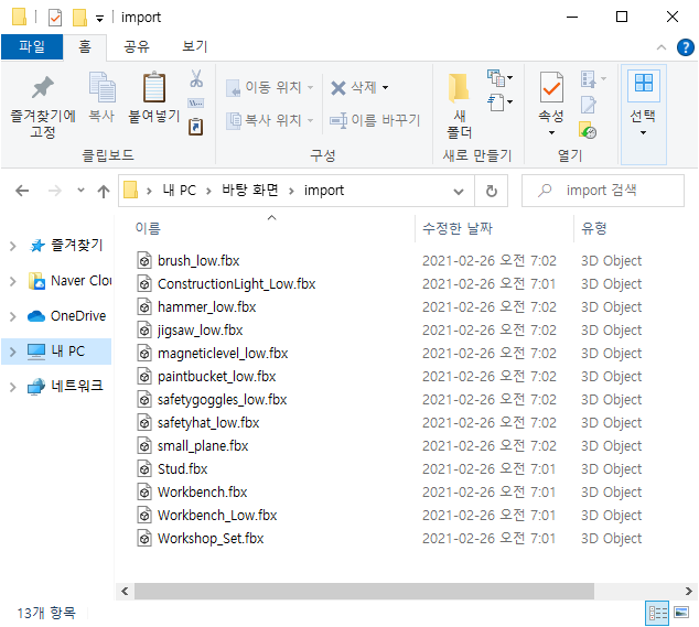 7)씬으로 가져오기할 오브젝트 파일 및 폴더를 준비한다.