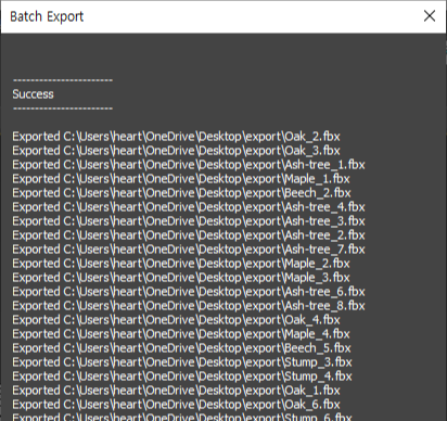 5)export selection을 클릭하면 순차적으로 오브젝트 내보내기를 진행한다.