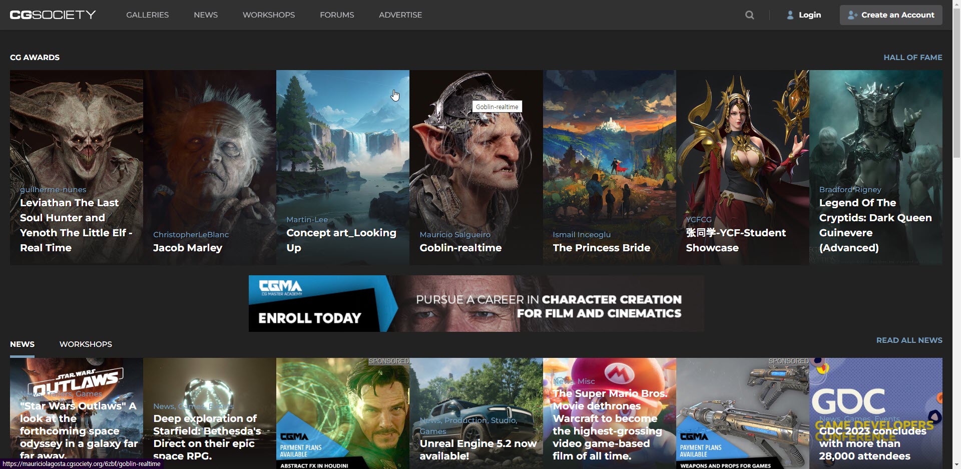 2D, 3D 그래픽 아티스트 작품 갤러리 웹사이트 모음