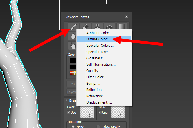 4)아래 표시한 브러시를 선택하고 diffuse color를 선택한다.