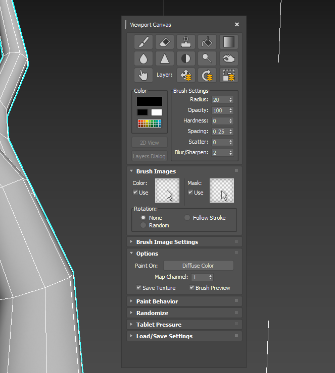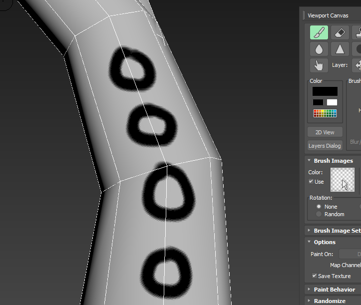 viewport canvas는 씬에있는 오브젝트에 색상 및 패턴을 페인팅할수있는 도구를 제공한다.