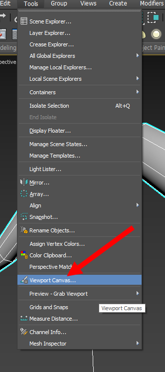 3)상단의 tools 메뉴에서 viewport canvas로 이동한다.