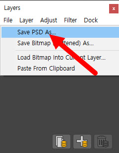 11)save PSD as를 선택하면 이미지 및 레이어를 psd파일로 저장한다.
