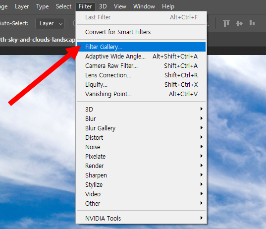 포토샵 필터 갤러리(filter gallery) 비활성화된경우