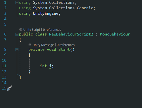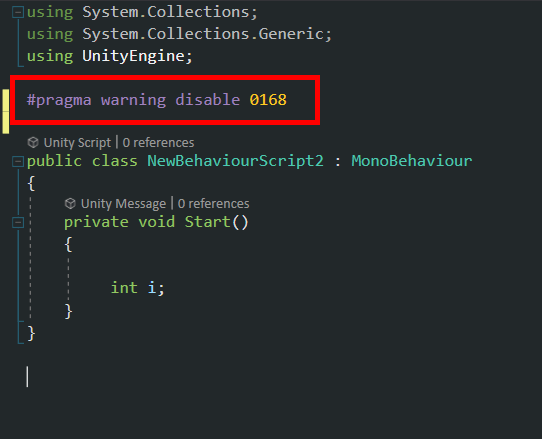 (CS0168 the variable 'i' is declared but never used)