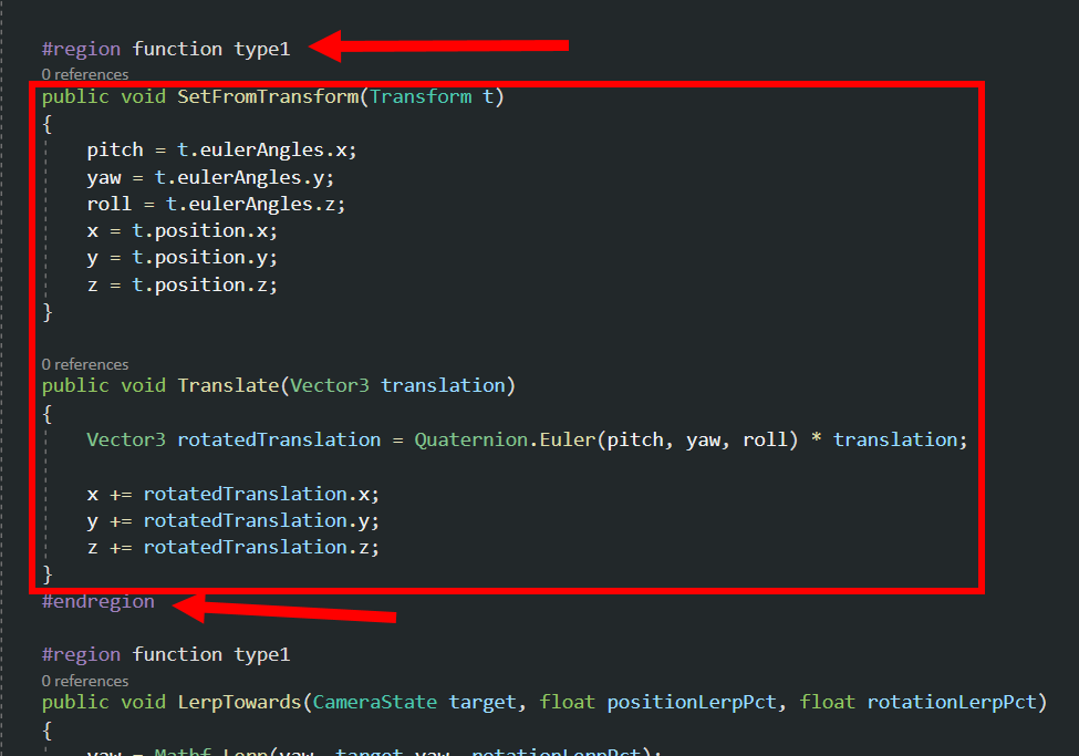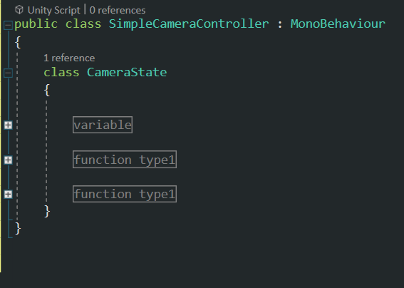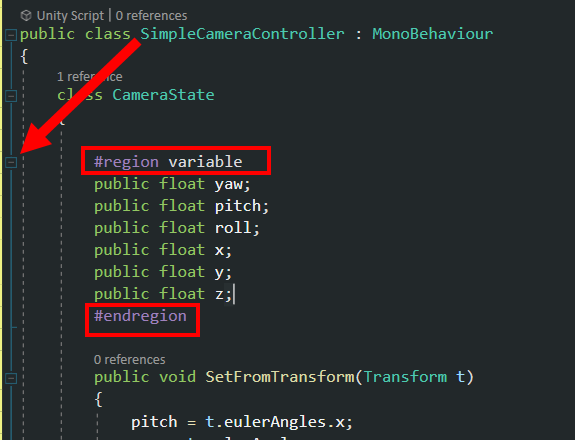 c#스크립트에서 region, endregion를 사용하여 확대 및 축소 할수있는 코드 블록을 지정할수있다.