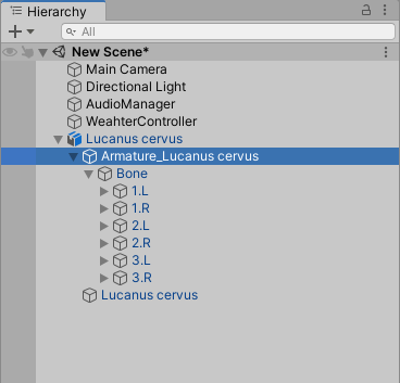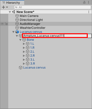 5)이와같이 계층에 있는 게임 오브젝트의 이름과 해당 게임 오브젝트에 대한 애니메이션 속성의 이름이 일치해야한다.
