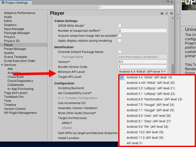 유니티 안드로이드 빌드3 - 프로젝트 player settings, 최종빌드하기