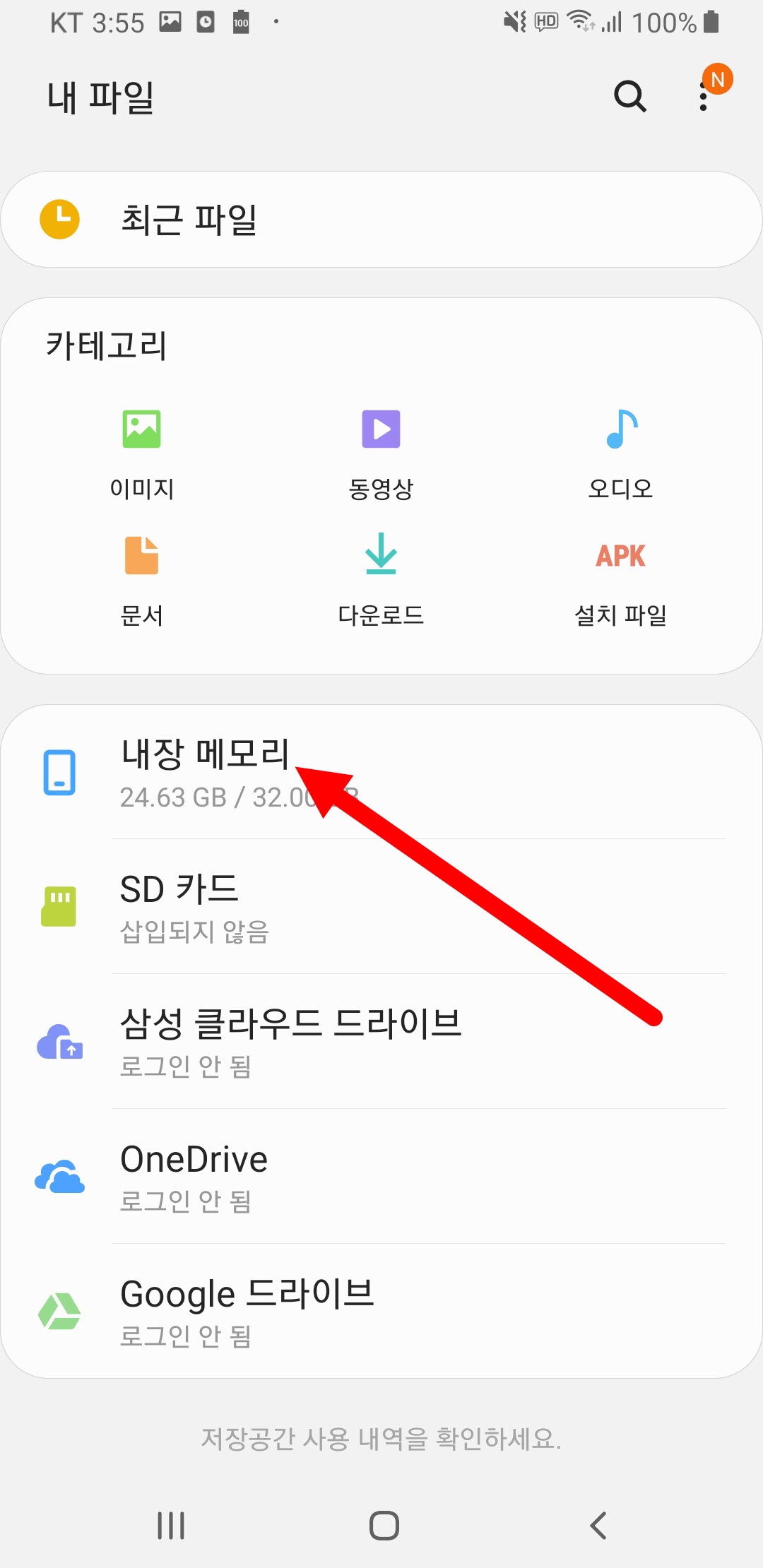 7)내장 메모리로 이동한다.