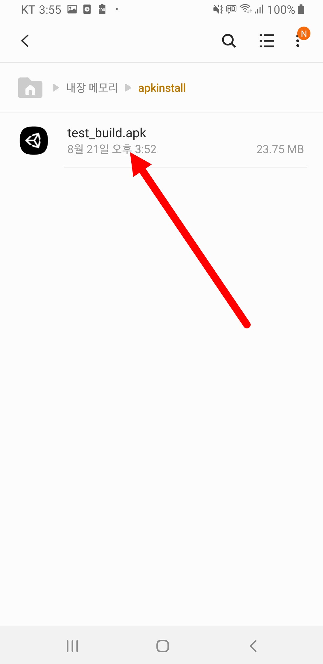 1)유니티 에디터에서 빌드를 완료하면 생성한 apk파일을 확인할수있다.