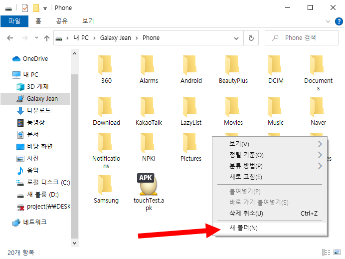 3)phone 폴더에 새로운 폴더를 생성한다.