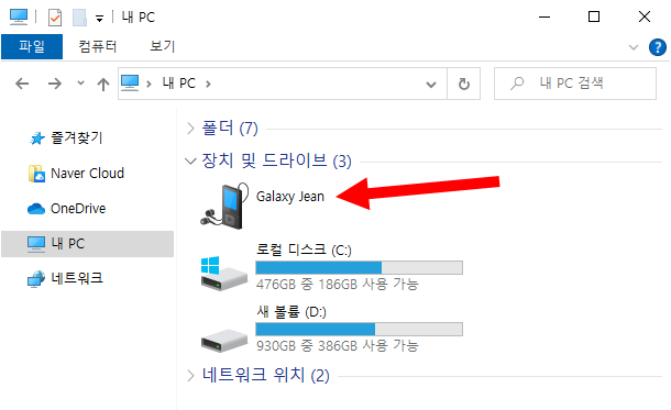 2)컴퓨터에 모바일 장치를 연결하고 폴더로 이동한다. 예에서는 삼성 갤럭시를 이용하였다.