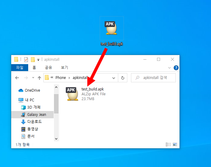 9)해당 폴더에서 복사한 apk파일을 선택한다.