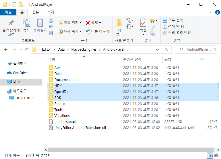 유니티 안드로이드 빌드2 - android SDK, NDK, oepnJDK 설치하기
