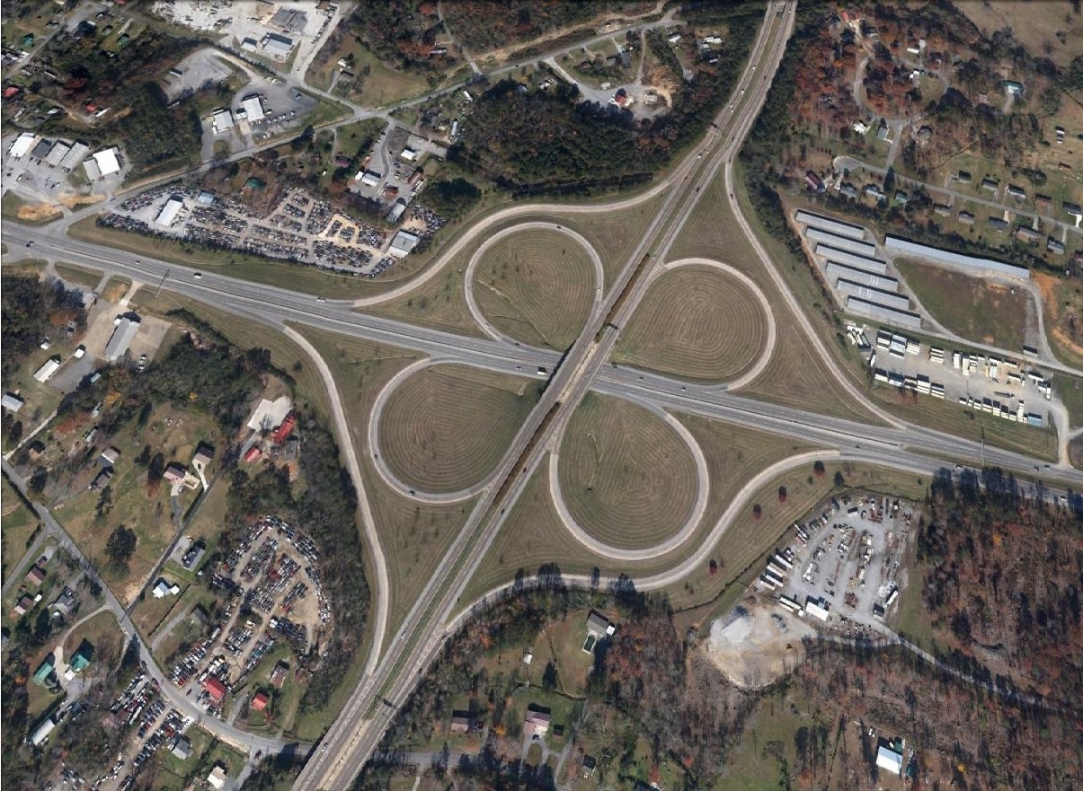 도로가 서로 다른 높이에서 교차합니다. 하나의 도로는 위로 지나가고 다른 도로는 아래로 지나가는 방식입니다. 주로 고속도로에서 교통의 흐름을 끊지 않고 상하 입체 교차(Grade Separation)하도록 만든 구조물입니다. 신호등 없이 도로 간 교통을 원활하게 연결하며 고가도로나 지하도로를 사용합니다(고속도로와 국도 또는 다른 고속도로의 연결 지점)