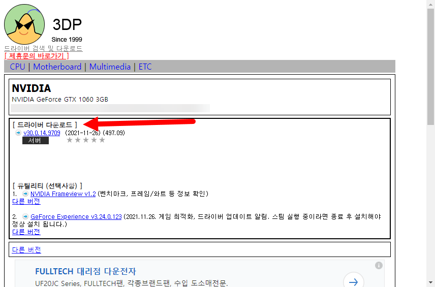 해당 프로그램을 다운로드하고 설치 및 실행하면 현재 컴퓨터의 하드웨어 사양을 표시하고 이와 호환되는 드라이버 다운로드 웹사이트로 이동할수있다.