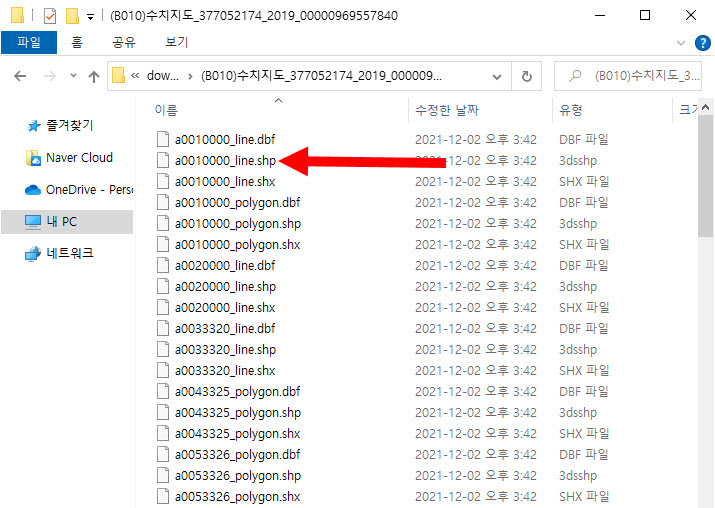 9)작업을 완료하면 동일 폴더에서 변환된 shp파일을 확인할수있다.