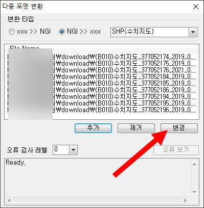 8)변경을 클릭하면 파일 변환을 시작한다.