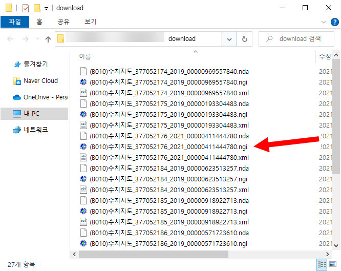 1)아래에서 수치지도 파일의 형식이 ngi인것을 확인할수있다.