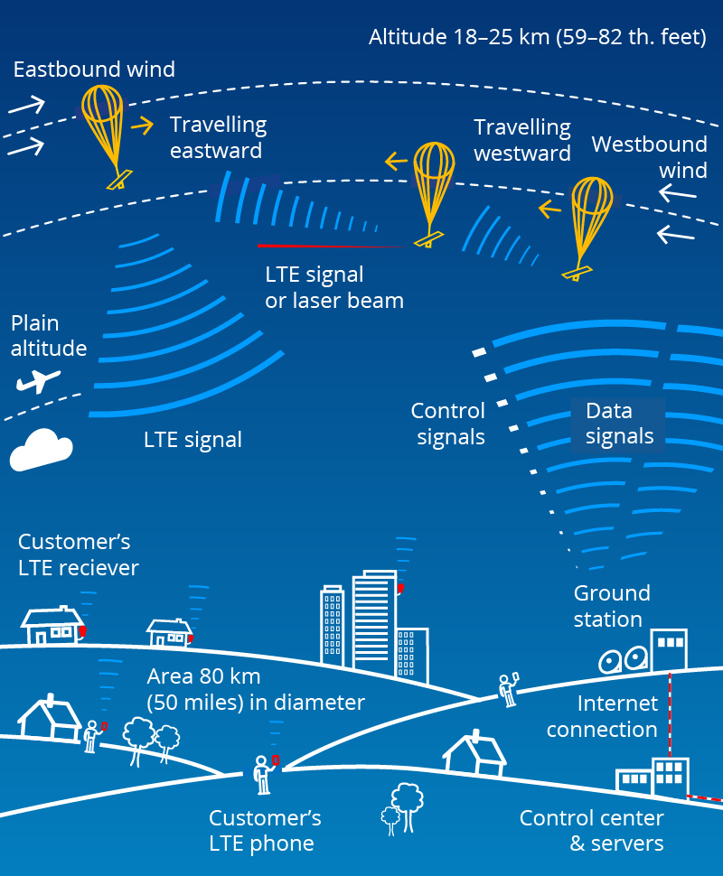 2011년 google X의 연구 개발 프로젝트로 시작한 project loon은 성층권에 풍선을 띄워서 인터넷을 연결 및 확장하기위해 진행되었다. 풍선은 미국해양대기청의 데이터를 사용하여 성층권에서 비행하며 인터넷 사용자는 풍선 네트워크에 연결하여 글로벌 인터넷 서비스를 이용할수있도록 한다.