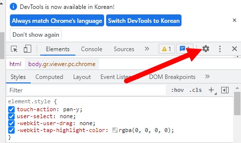 3)개발자 도구의 설정(settings)으로 이동한다.