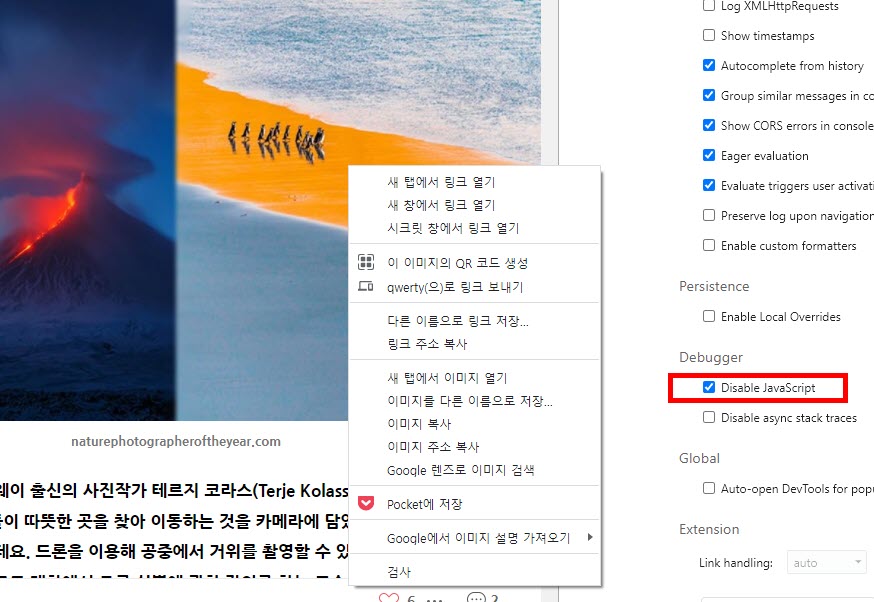 크롬 브라우저에서 웹페이지의 이미지 우클릭 방지를 해제하는 방법
