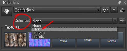 8)materials의 color set에서 bark를 선택합니다(기본은 none입니다)