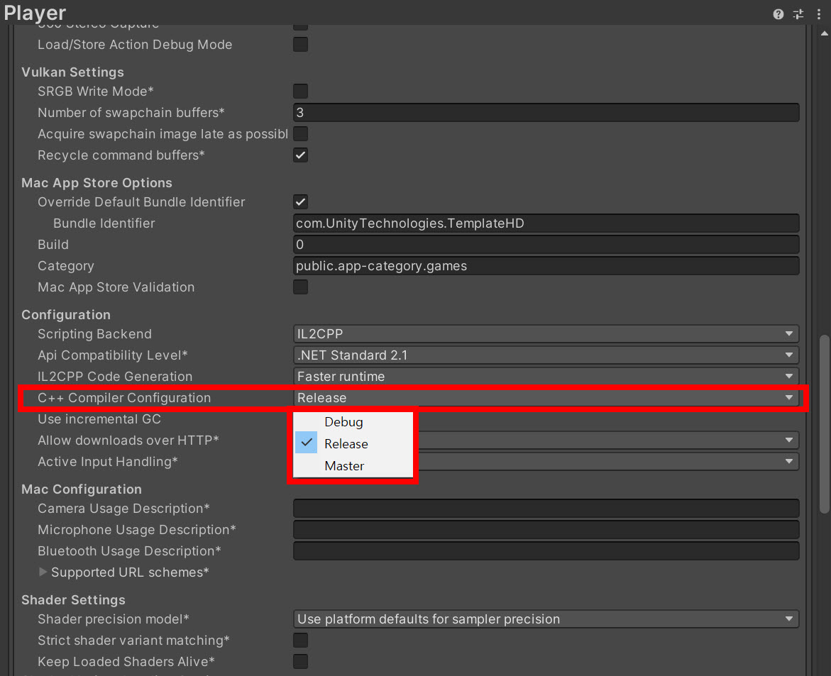 https://docs.unity3d.com/ScriptReference/Il2CppCompilerConfiguration.html