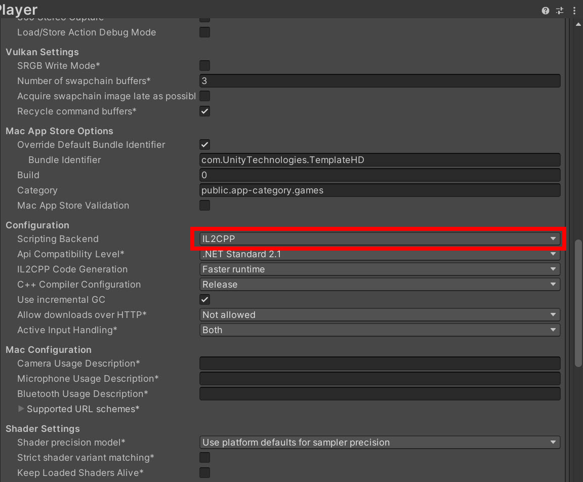 유니티(Unity) 프로젝트 빌드에서 스크립팅 백엔드 IL2CPP