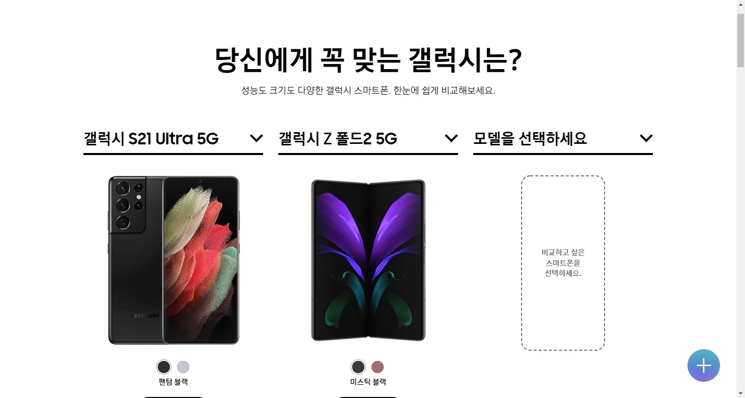 여러 종류의 삼성 스마트폰을 직접 비교해보세요. 디자인과 기능, 스펙 등을 한눈에 비교할 수 있어 제품 선택이 한결 쉬워집니다.