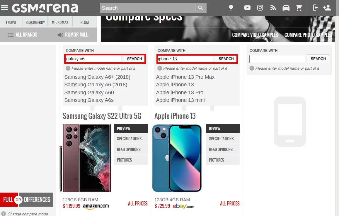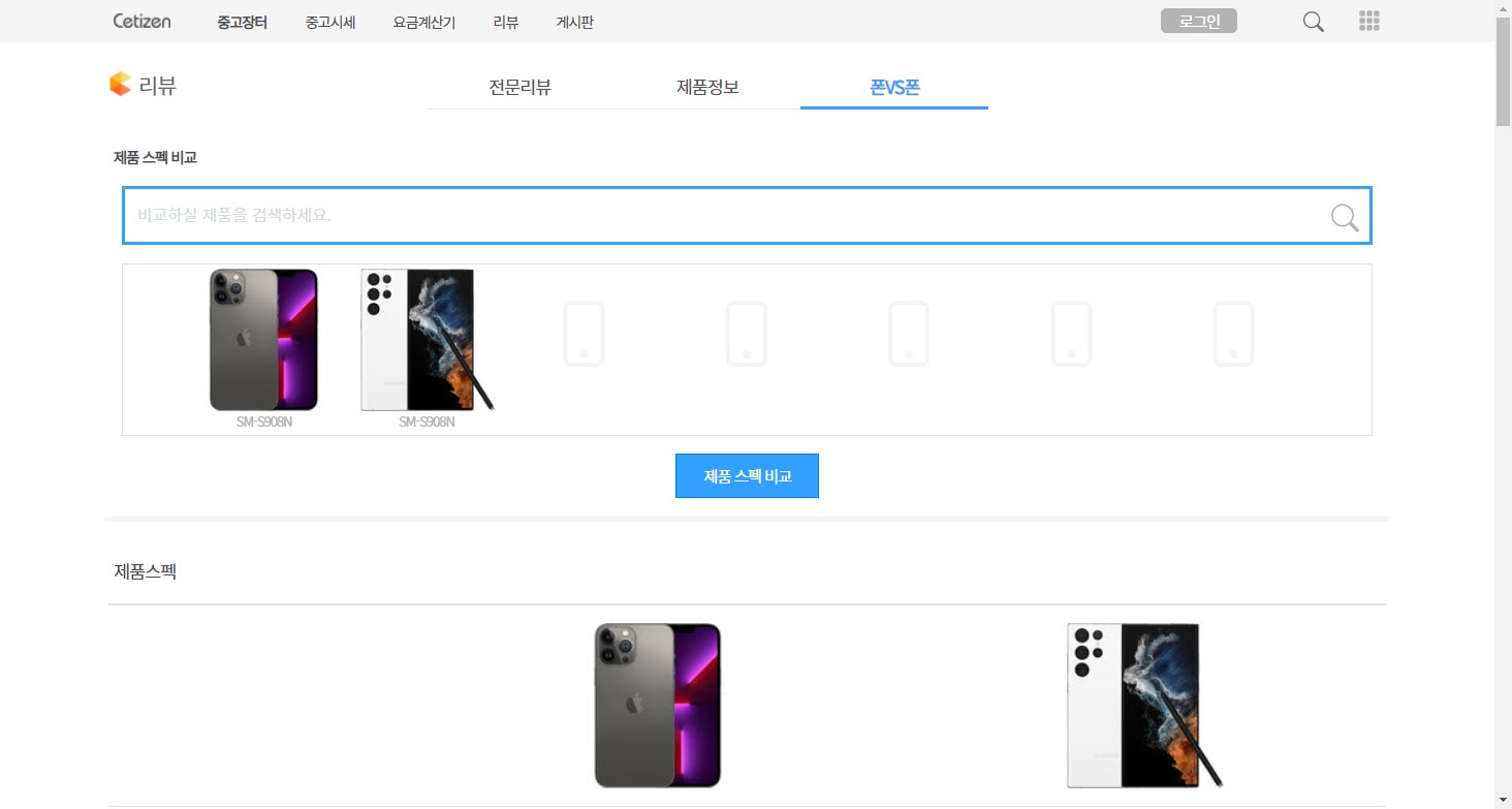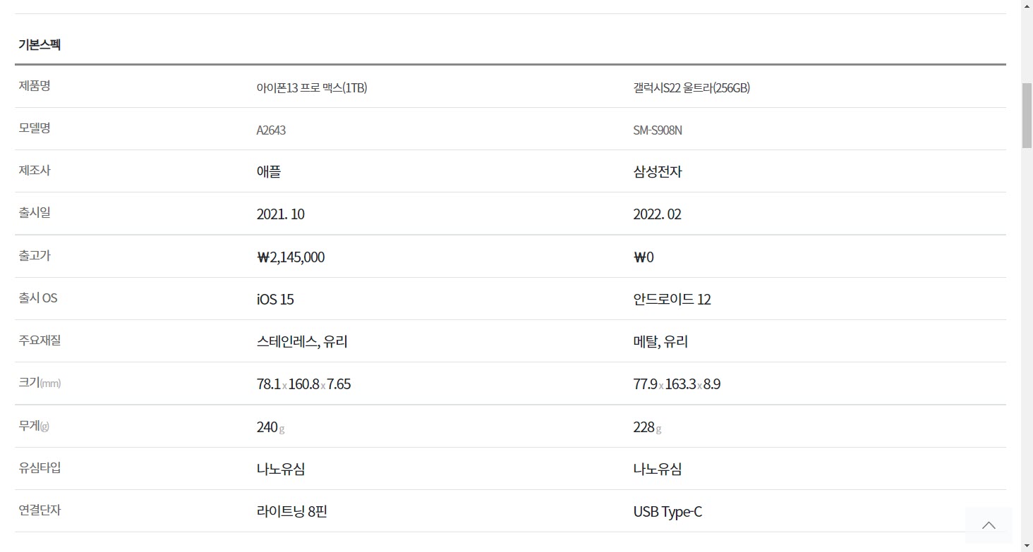스마트폰의 사양(운영체제, 크기, 무게, 디스플레이, cpu, 메모리, 칩셋, 배터리, 기타)을 비교할수있는 웹사이트들