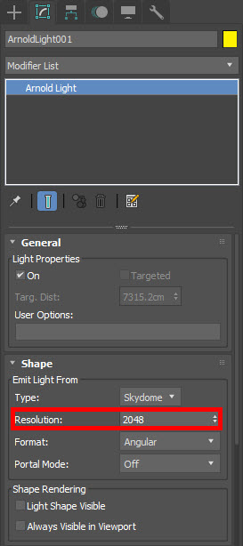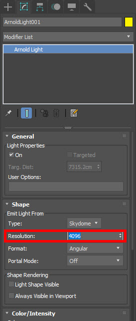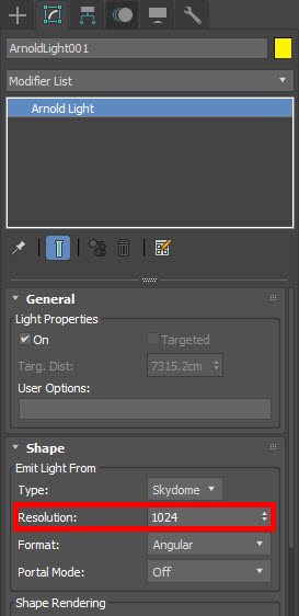 3d맥스에서 아놀드 렌더러를 사용하여 렌더링할때 skydome 라이트의 환경맵 해상도를 높이는 방법