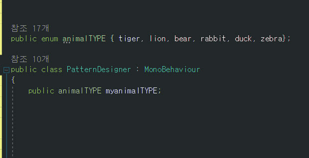1)아래 예에서 열거형을 선언하고(animalTYPE) 해당 열거형 변수를 선언하였다(myanimalTYPE)