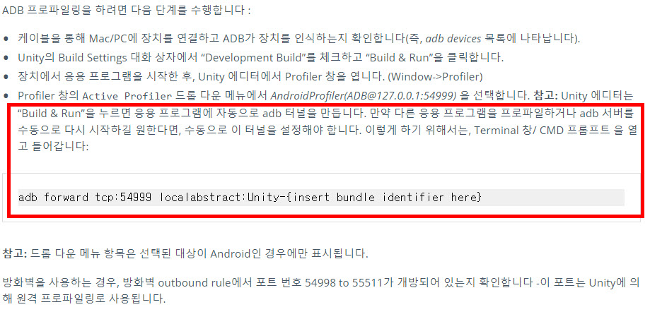 유니티에서 데스크톱에 연결된 안드로이드(모바일 장치)의 어플리케이션(게임)을 프로파일링 하는 방법