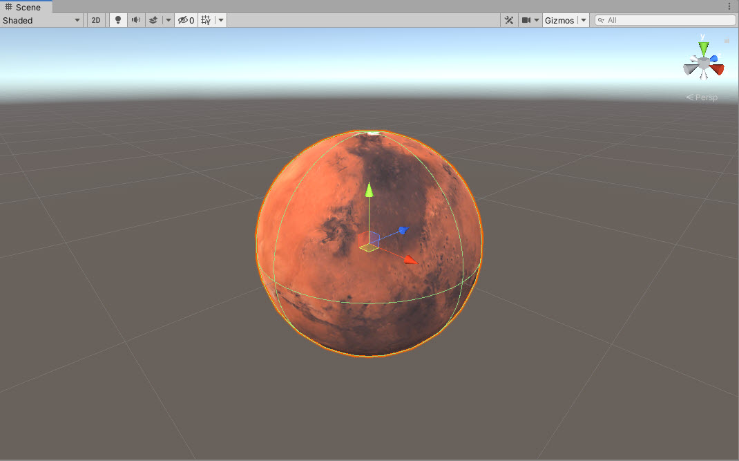 1)씬에 스피어 오브젝트를 생성하였다.