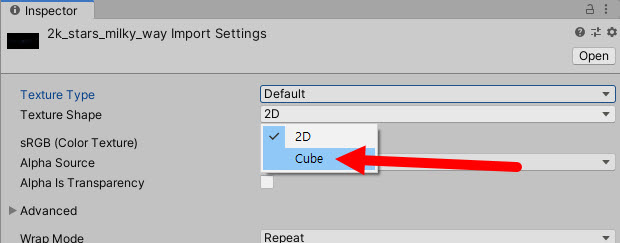 2)texture shape에서 cube를 선택한다.
