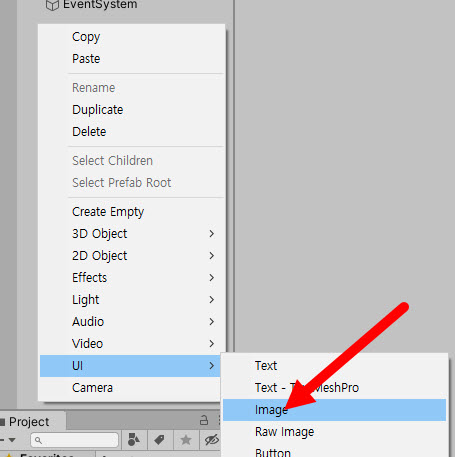 1)씬에 이미지(image) 오브젝트를 생성한다.